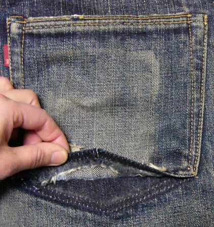 12:最後はポケットです。 お財布の跡が、きれいに付いています。 |