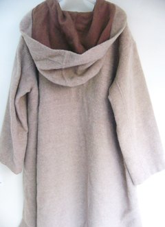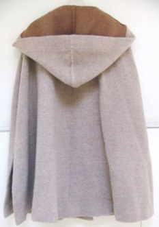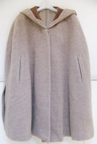 最近アンティーク着物に凝っている ということで、 和装にも合う、マントに仕立て直しをしました。 フードやポケットもいかして、 丈も短くなりました。 |