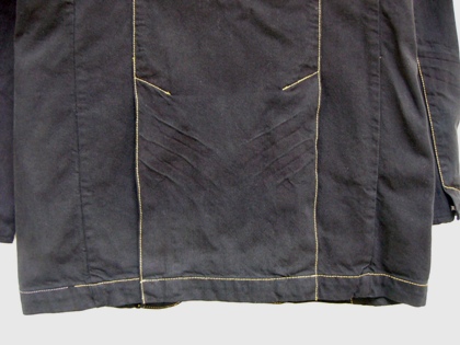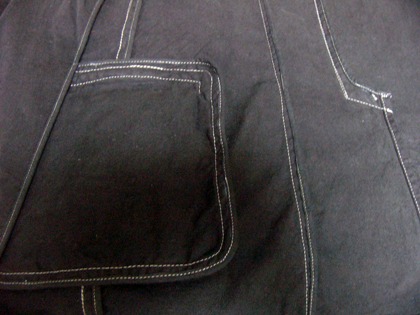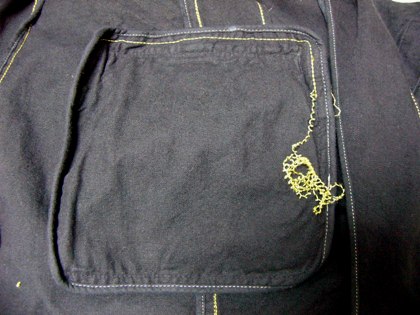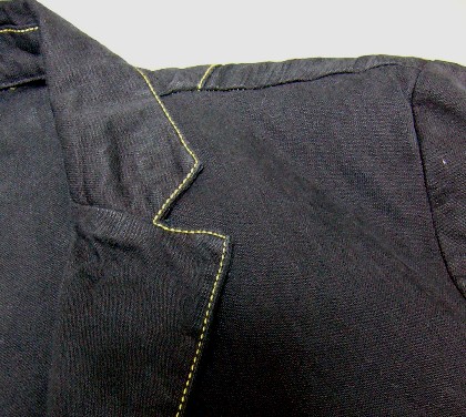 こちらは、メンズのコットンジャケット。 裏地無し、1枚仕立てで、色は黒の後染め、 黄色のステッチが効いたカジュアルジャケットです。 今回のお直しは… お直しというか、カスタマイズなのです。 なんと! この黄色のステッチすべてを、 別の色に変えるのです! ・・・すごいです。 上からマジックペンで塗ってしまった方が 早いかも? つまり、「この服を一度すべて分解し、 また縫い直す」というくらいの事をするのです。 パソコンで、ステッチの部分だけ、 ボタン一つで色を変更するのとは、訳が違います。 では、早速分解から始めましょう! |