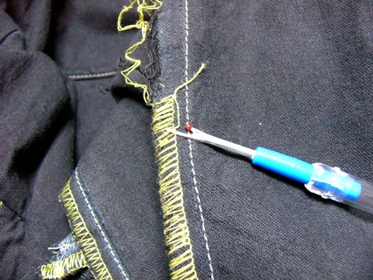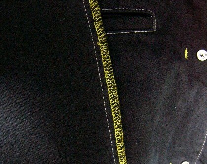 11:ステッチだけではありません。 この、ジグザグに縫ってある所。 「ロックミシン」といいますが、これも変えます。 |