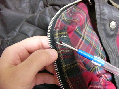当店のファスナー交換は、 基本的にYKKファスナーを使用いたします。 サイズ・色などは、特注も承ります。 こだわりのファスナーをお持込いただいてもOKです。 今回は、Belstaffのブルゾンです。 かなり使い込んでる感でわかる愛情度。 お客様にご協力いただきました。 ついにファスナーのムシ(務歯。正式名称はエレメント) が欠けてしまいました。 こうなると、総取替えしかありません。 |